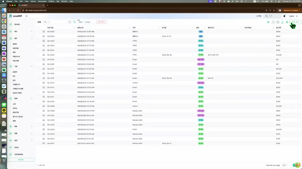 ianaiERP에서는 하나의 통합 화면에서 판매 주문, 청구서, 판매 영수증을 생성·관리할 수 있어, 다양한 업무 시나리오에 유연하게 대응하면서 판매 프로세스를 간소화합니다.